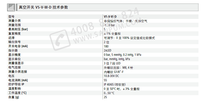 电子式真空开关;测量范围为-1bar至0bar;优化工作周期,调整系统回路,提高真空系统的经济效益;方形设计更适合面板安装;适用于所有自动化搬运领域.