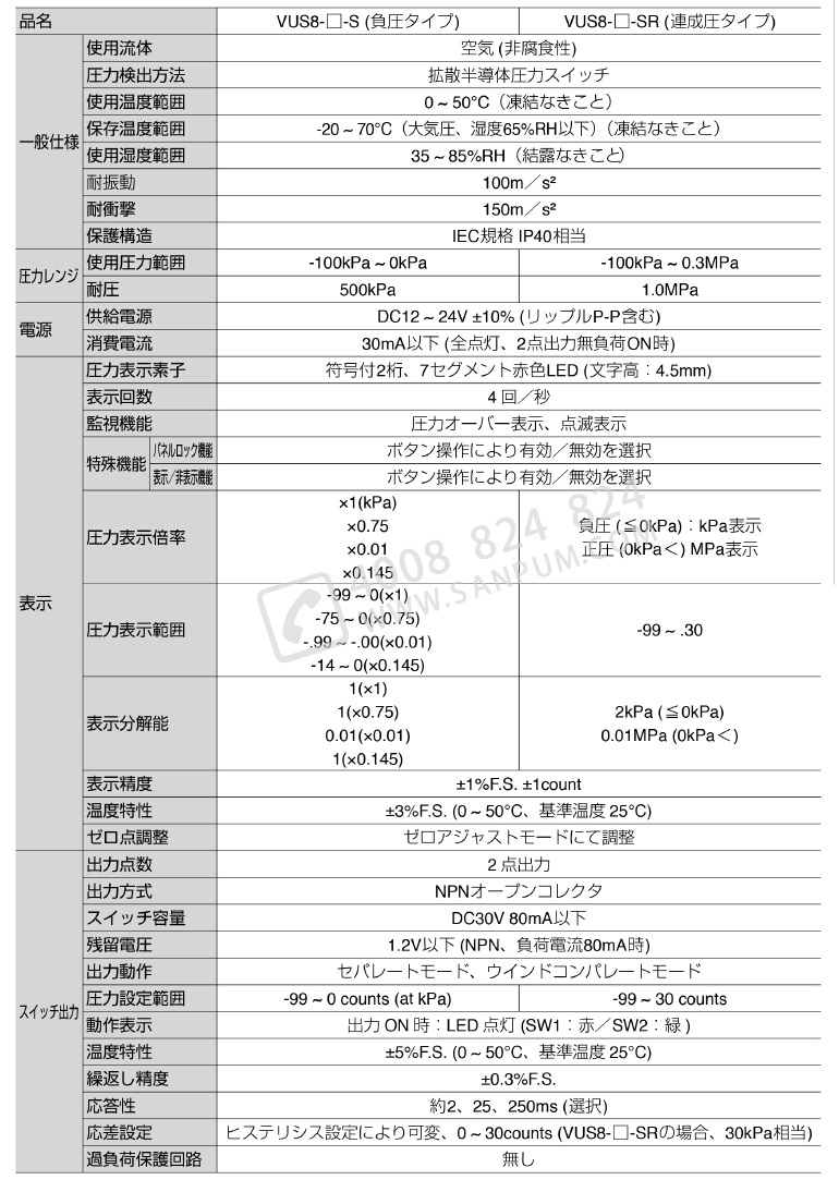 216913/VUS8-M5M5-S/VUS8系列超薄型LED显示器真空开关