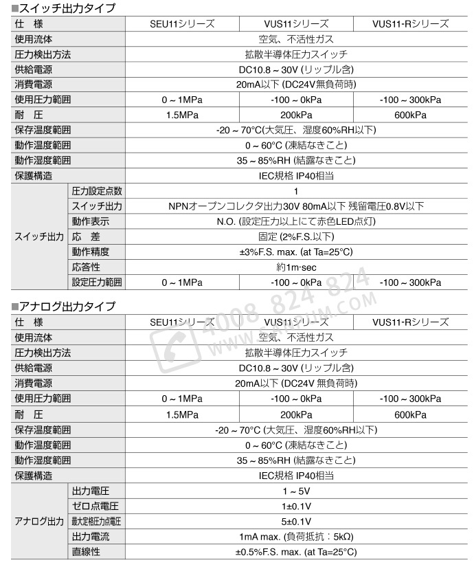 216935/VUS11-M5S-S3/VUS11系列小型压力传感器