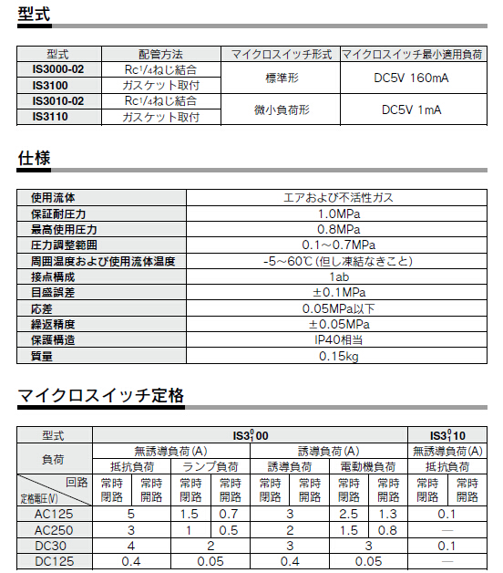 217103/IS3010-N02-L2/IS3000系列气动压力开关