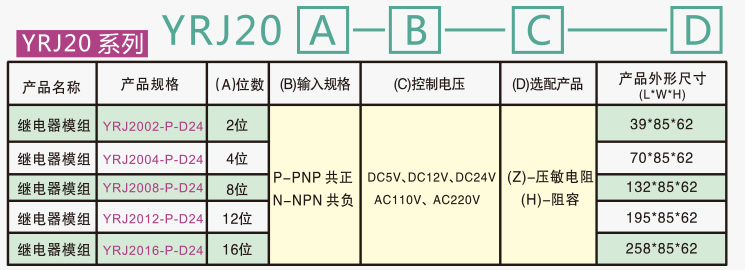 217628/YRJ2016-P-PNP-DC12-Z/YRJ20带继电器模组端子台