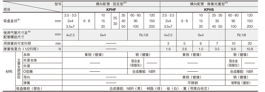 标准型横向配管真空吸盘KPHF