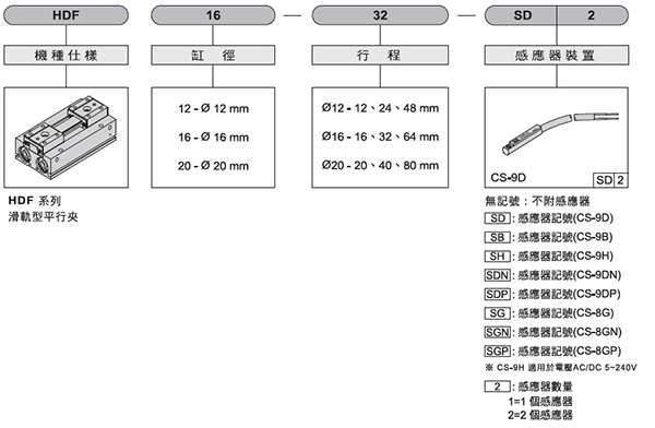 218572/HDF-16-16-SD2/滑轨型平行机械夹HDF