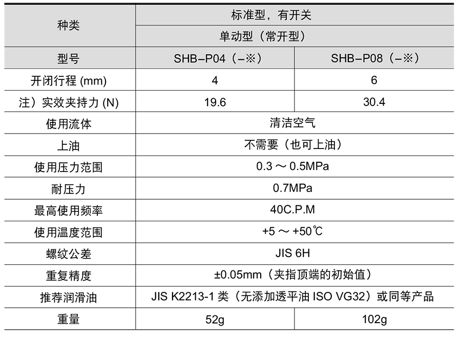 218977/SHB-P04/平行开闭型短体型夹持器SHB