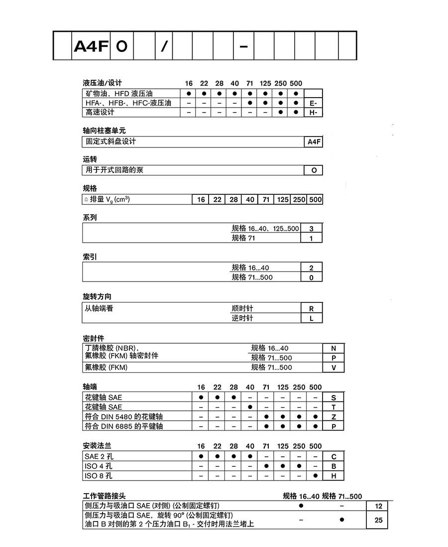 219419/A4FO-500/30R-PZH25-N00/A4FO变量泵