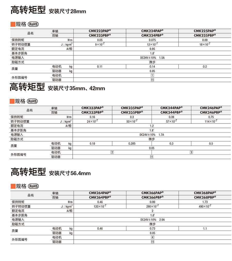 220416/CMK246PAP/CMK系列高转矩型2相步进马达