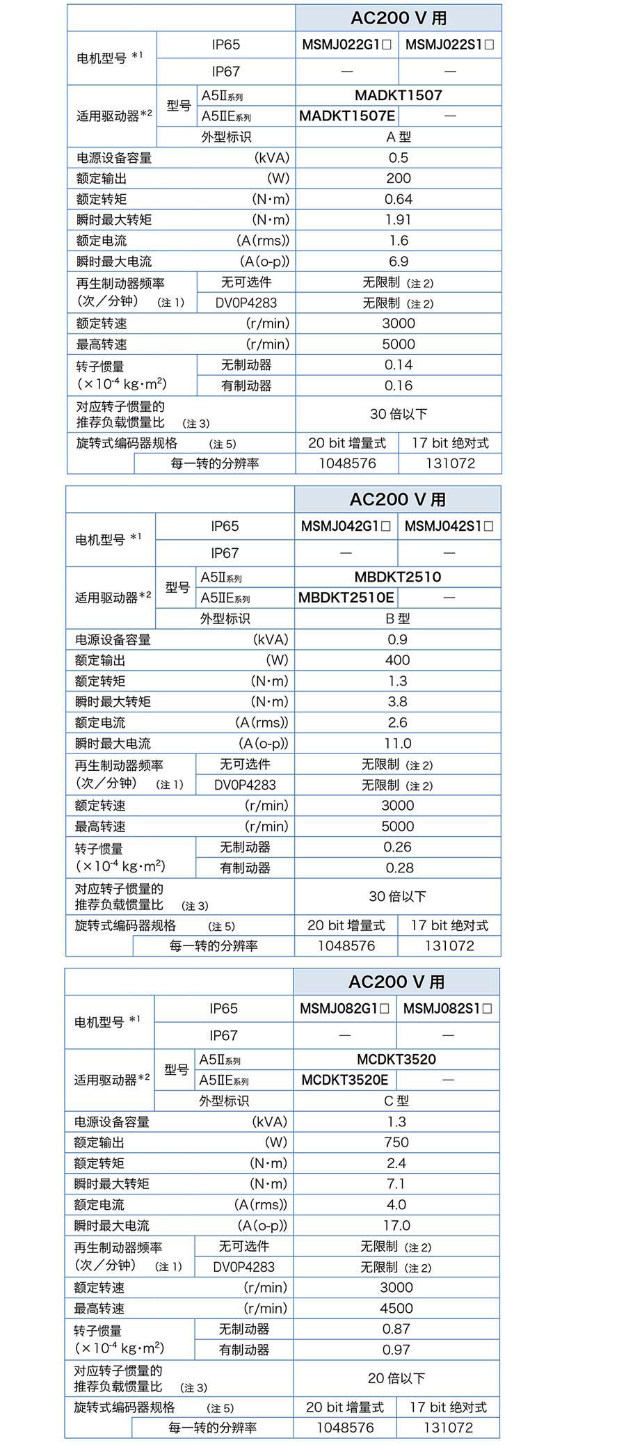 220650/MSMJ022S1A/MSMJ系列低惯量小容量伺服电机