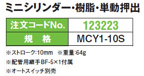 220972/MCY1-10S/MCY1-10S微型气缸•树脂•单动推出
