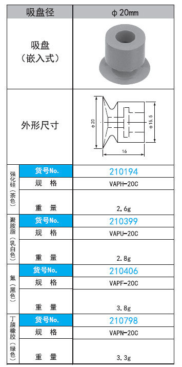 221373/VAPH-20C/VAP-20C系列直径20mm嵌入式真空吸盘