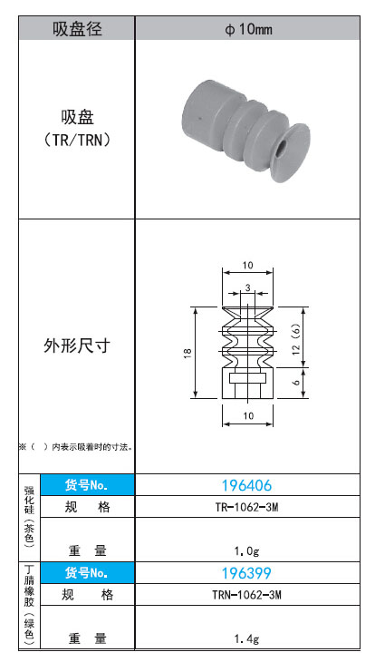 221411/TR-1062-3M/TR•TRN-1062-3M系列直径10mm吸盘