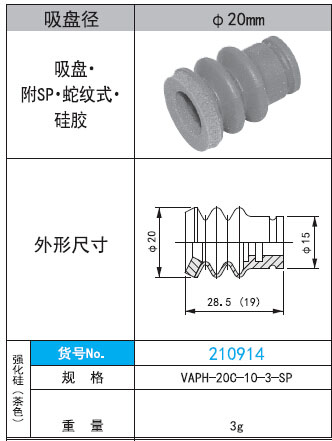 221430/VAPH-20C-10-3-SP/VAPH-20C-10-3-SP吸盘(附SP•蛇纹式•硅胶)