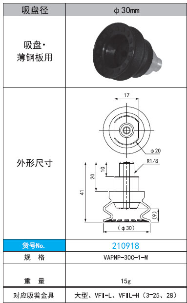 221439/VAPNP-30C-1-M/VAPNP-30C-1-M薄型钢板用吸盘