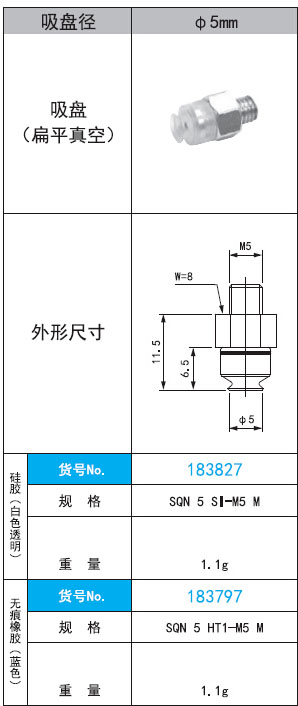 221447/SQN 5 SI-M5 M/SQN 5 -M5 M直径5mm扁平真空式吸盘
