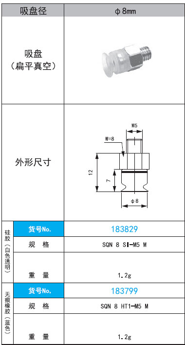 SQN 8 -M5 M直径8mm扁平真空式吸盘