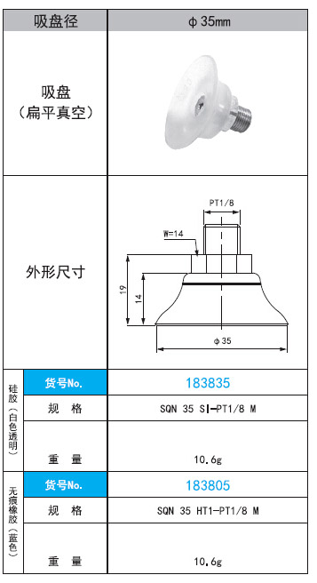 221464/SQN 35 HT1-PT1/8 M/SQN 35 SI·HT1-PT1/8 M直径35mm扁平真空式吸盘