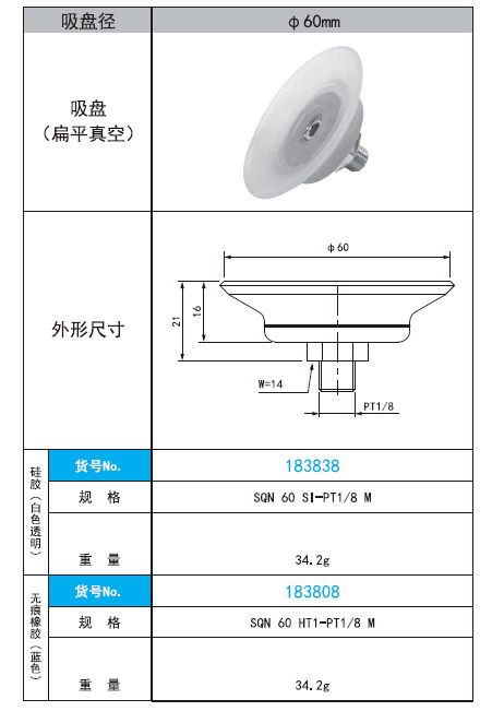 SQN 60 SI·HT1-PT1/8 M直径60mm扁平真空式吸盘
