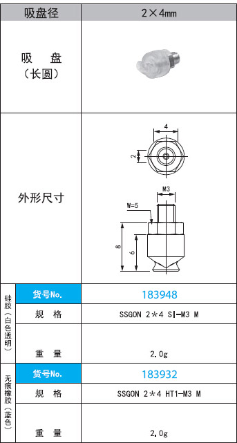SSGON 2*4 SI·HT1-M3 M直径2x4mm长圆形吸盘