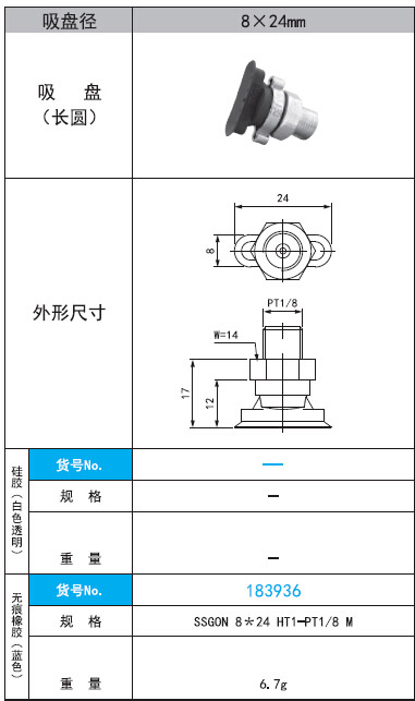 221480/SSGON 8*24 HT1-PT1/8 M/SSGON 8*24 HT1-PT1/8 M长圆形吸盘