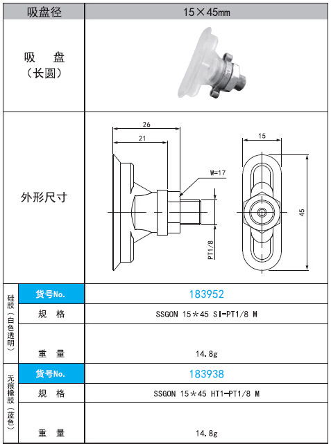 221483/SSGON 15*45 SI-PT1/8 M/SSGON 15*45 SI·HT1 -PT1/8M直径15x45mm长圆形吸盘