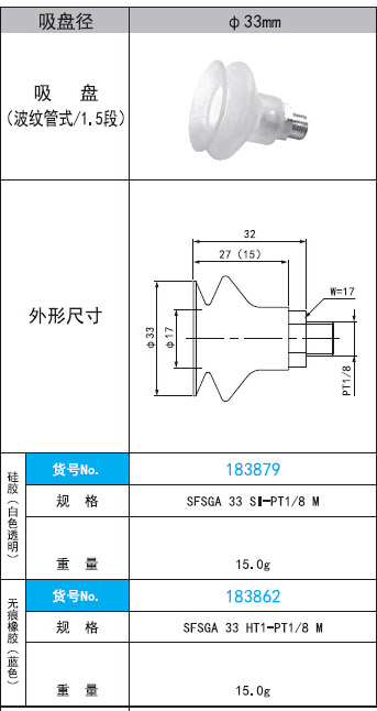 SFSGA 33 SI·HT1 -PT1/8 M直径33mm波纹管式/1.5段吸盘