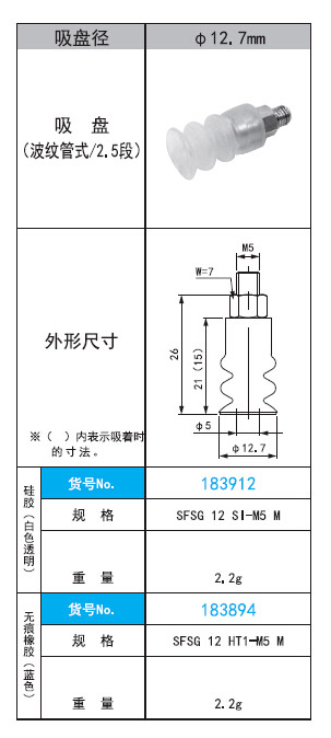 221508/SFSG 12 SI-M5 M/SFSG 12 SI·HT1 -M5 M直径12.7mm波纹管式/2.5段吸盘