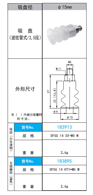 221511/SFSG 14 HT1-M5 M/SFSG 14 SI·HT1 -M5 M直径15mm波纹管式/2.5段吸盘