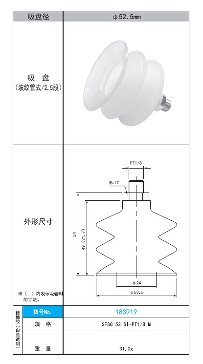 221522/SFSG 52 SI-PT1/8M/SFSG 52 SI-PT1/8 M波纹管式/2.5段吸盘