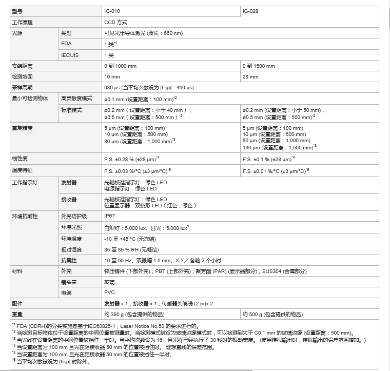 *5 当设置距离为 100 mm 且光在距接收器 50 mm 的位置被挡住一半时。 |