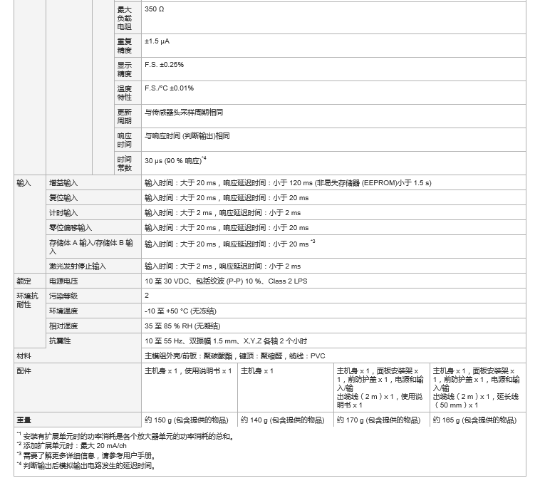 *1 安装有扩展单元时的功率消耗是各个放大器单元的功率消耗的总和。 |