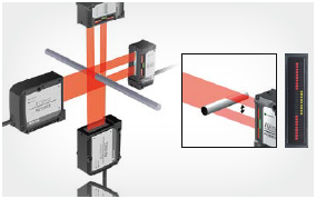 通过对射式LED光幕,实现外径、内径、宽度、位置等高速测量,透明体也可测量。
