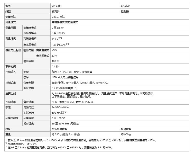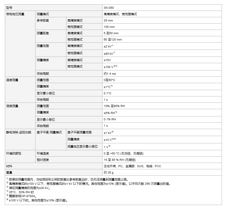 *3 在 68 至 72 mm 的测量距离测得。当电荷为 ±10 kV 至 ±30 kV 时,测量精度为 F.S. 的 ±5%。 |