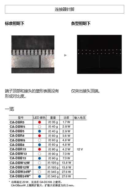 *1 左方列出的型号用于单一条型光源。一个方形需要四组。 |