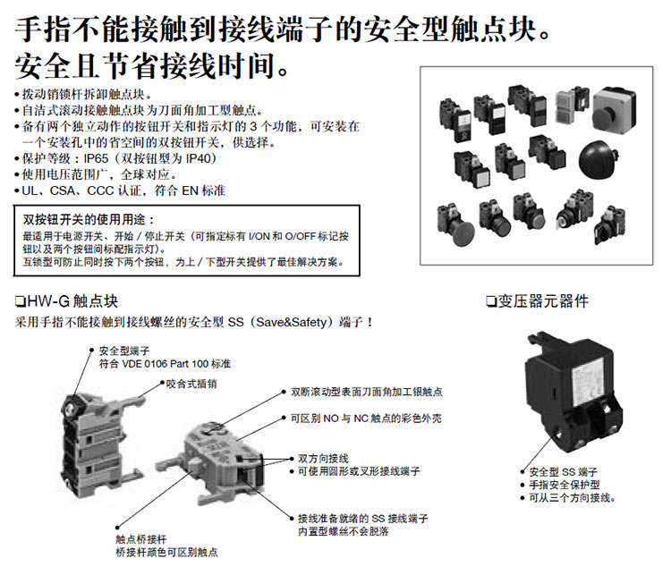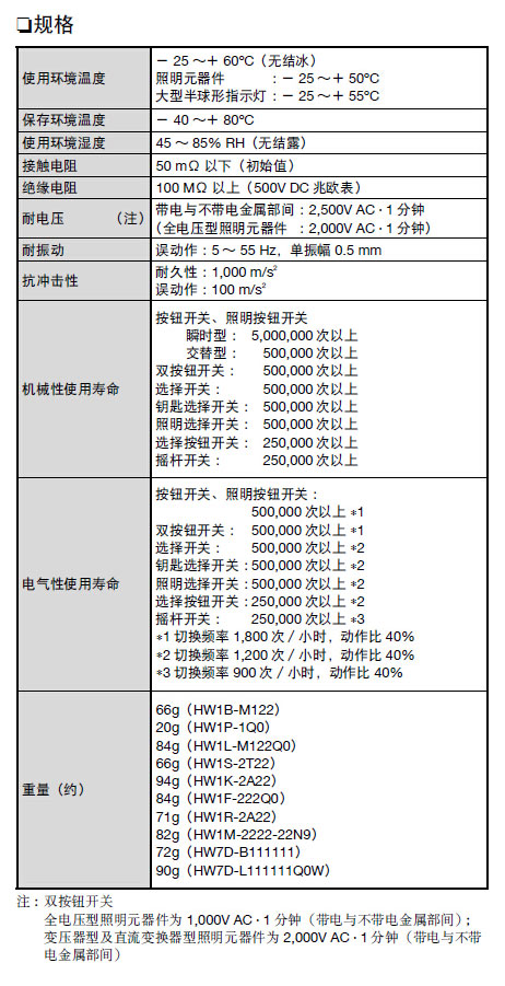 备有两个独立动作的按钮开关和指示灯的3个功能;