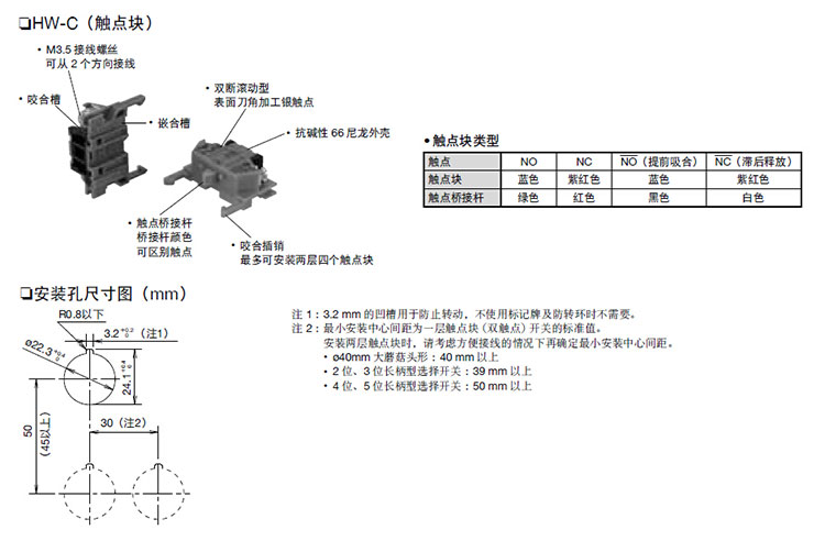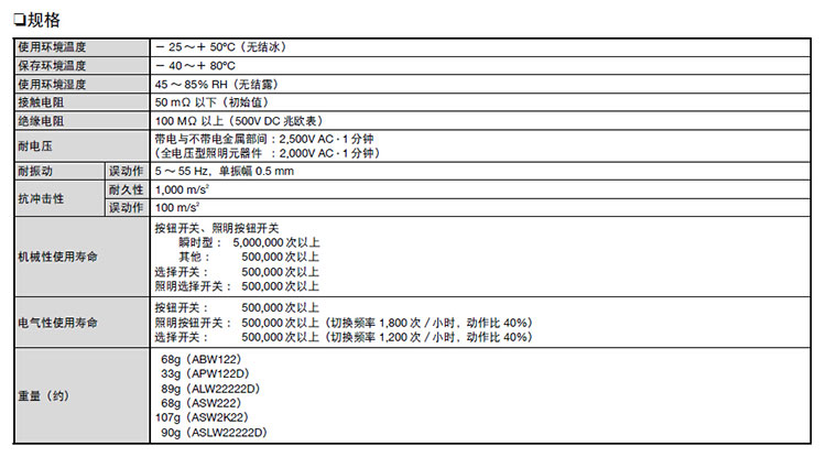 耐受力强,具有高防护功能; 使用具有高信赖的HW触点块; 保护等价:IP65(IEC 60529); UL、CSA、CCC认证,符合EN标准; 从工业生产自动化到一般民用,均可使用的通用型控制元器件。