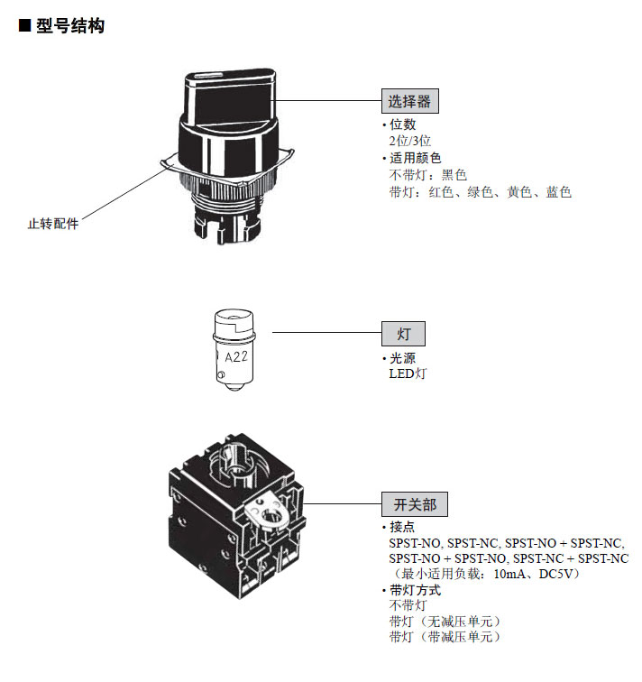 旋钮型选择开关(圆型ø22/25)