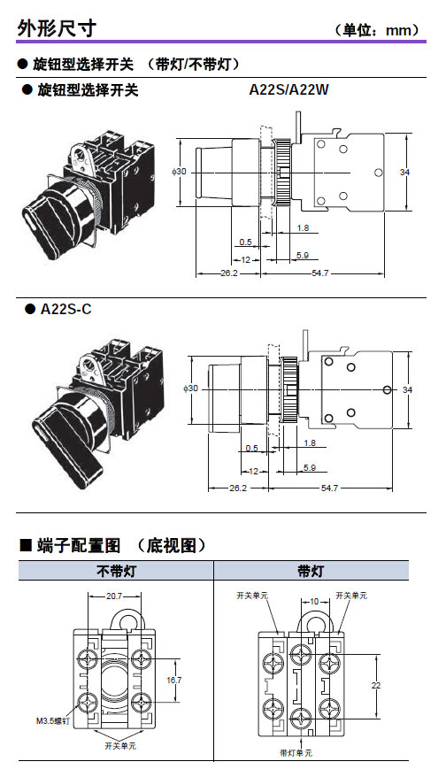 安装在Φ22和Φ25面板切口中;