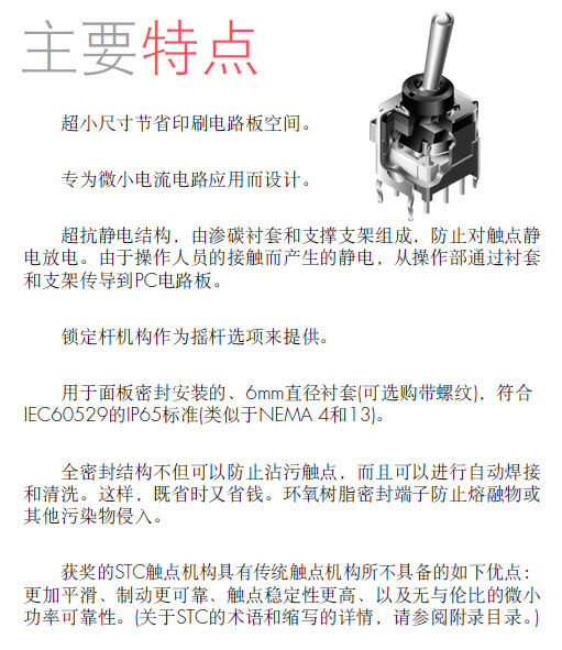 密封处理超小型抗静电摇头开关