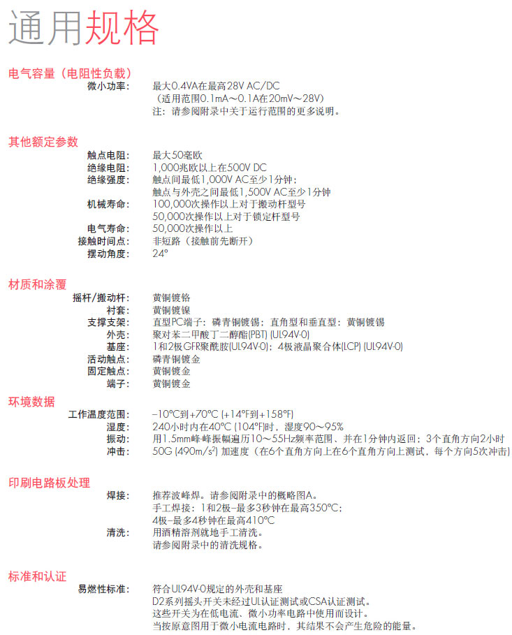 0.4VA微小功率; 直型、直角、以及垂直PC端子; 印刷电路板安装。