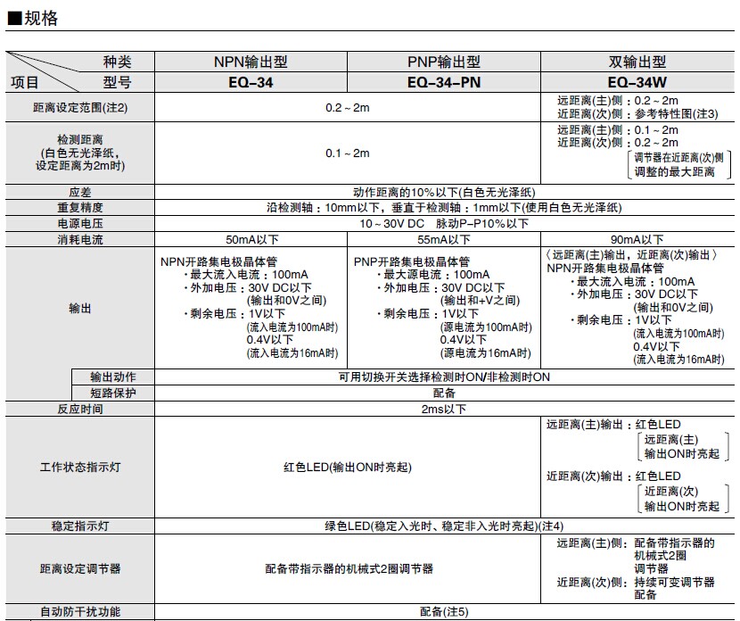 EQ-30系列距离设定反射型光电传感器(放大器内置)