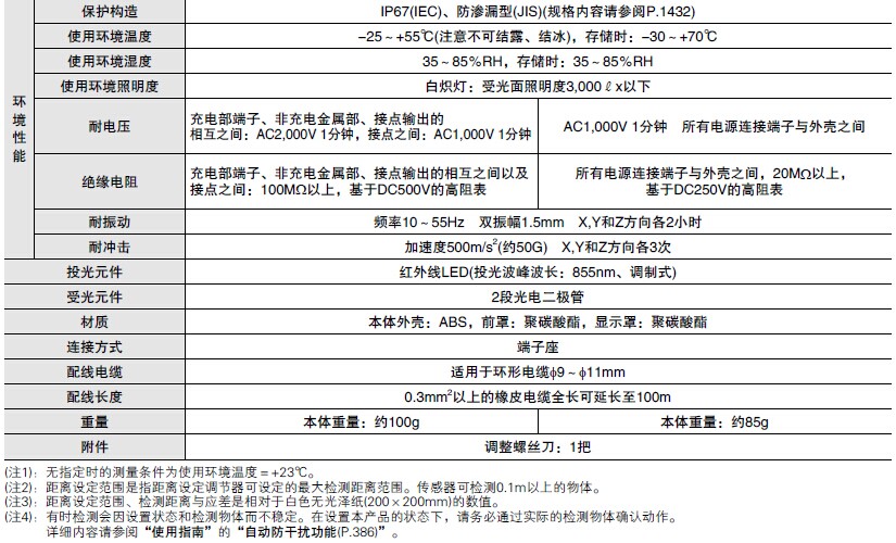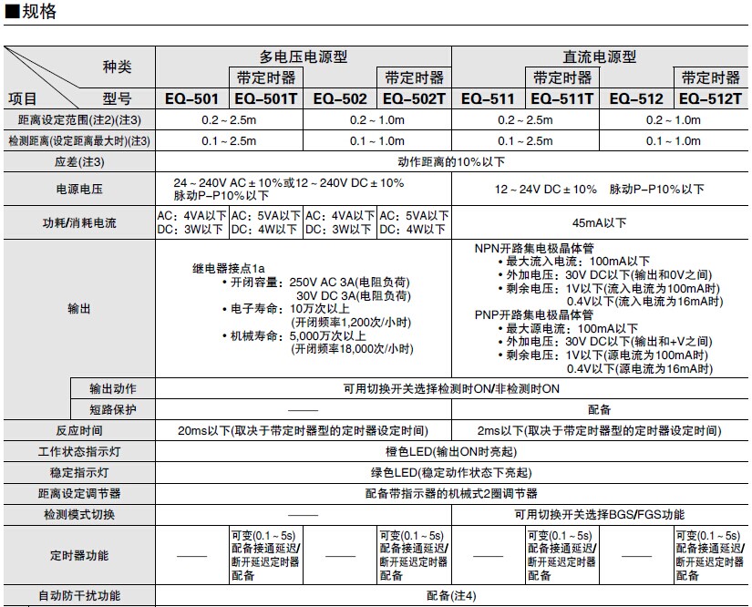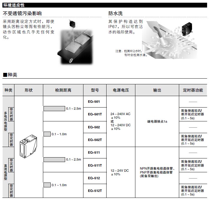 EQ-500系列距离设定反射型光电传感器(放大器内置、多电压电源)