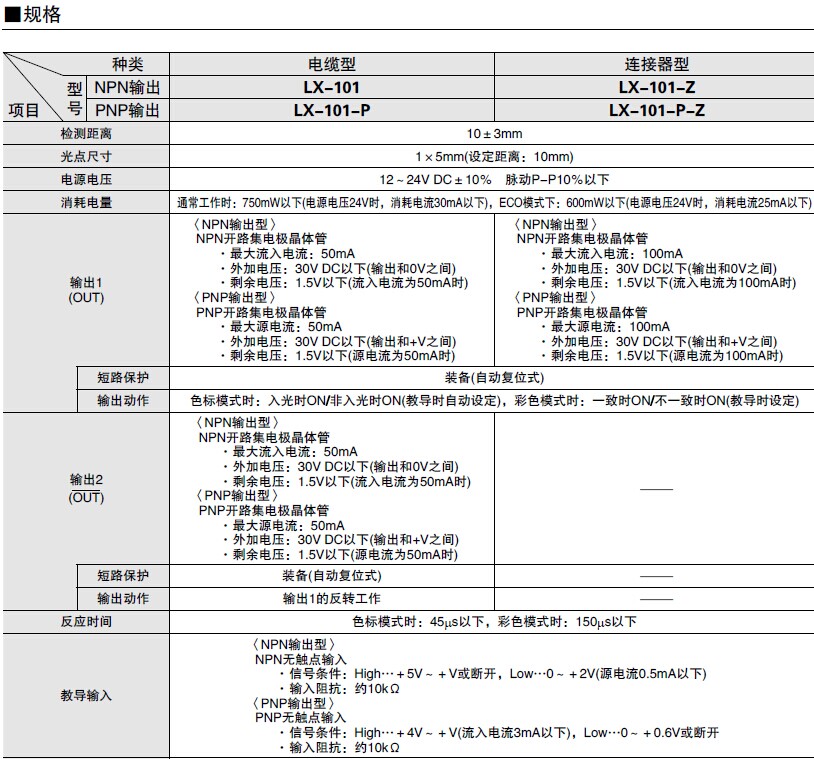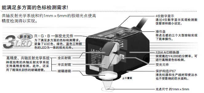 LX-100系列数字式色标传感器,放大器内置.
