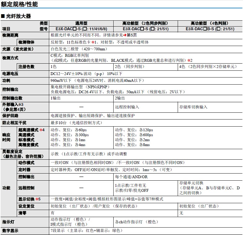 E3X-DAC-S系列彩色传感型数字光纤传感器