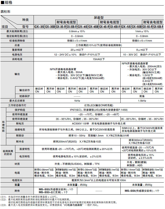 GX系列小型接近传感器(放大器内置)