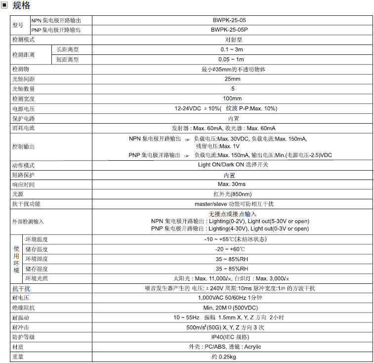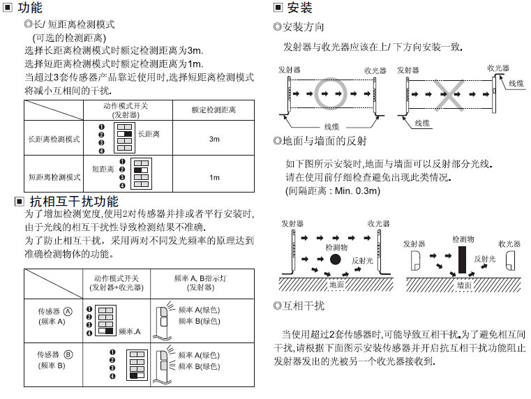 宽范围检测距离(0.1〜3m, 0.05〜1m);