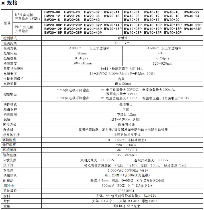 多样化产品(22种类),(光轴距离:20/40mm,光轴高度:120—960mm);