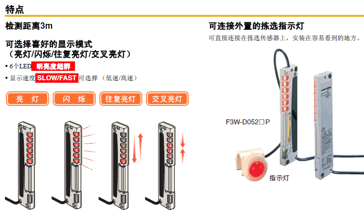 设置在零件架上,用指示灯指示零件取出顺序,是出错防止用的传感器;