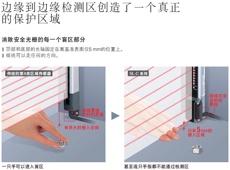 SL-C系列安全光栅,边缘到边缘的全范围检测.