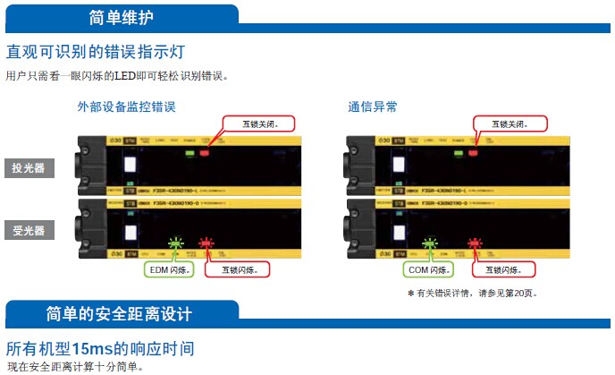 F3SR-B系列安全光幕,易于使用,强劲且可靠,长距离检测,可靠的实用性.