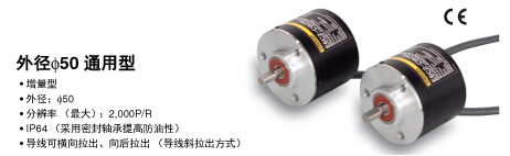增量式通用型,外径φ50,最大分辨率2000P/R,密封轴承提高放油性。