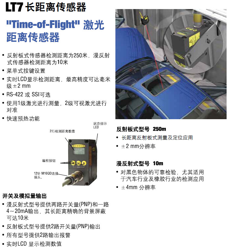 实时LCD显示检测距离,最高精度可达毫米级±2mm;